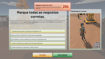 O jogo simula um ambiente de obra, onde o jogador deve observar atentamente o cenário em busca de riscos e situações perigosas. Ao identificar perigos, o estudante é desafiado a responder quizzes interativos, baseados em perguntas que normalmente aparecem em aulas e provas.
